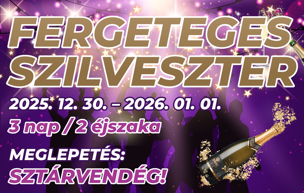 KAPCSOLATFELTÉVELTOVÁBBI CSOMAGAJÁNLATOKTöltsd a Szilvesztert fergeteges hangulatban sztárvendégünkkel, ahol a szobaárak tartalmazzák a szállást félpanziós ellátással (reggeli és vacsora), Szilveszter éjszakáján egy exkluzív gálavacsorát korlátlan italcsomaggal a Zselicvölgy Borkupolájában, valamint a részvételt minden szilveszteri programon – garantált a hajnalig tartó mulatság, élő zene és felejthetetlen élmény!
